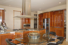 The breakfast area adjoins the open kitchen with stainless steel bench tops and Gaggenau appliances. The kitchen utilizes both gas and electricity and offers built in storage with walk separate pantry.