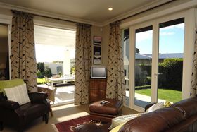 Don't judge this book by its cover. The true quality of this executive home and only truly be appreciated once one is inside. The impressive entrance hall with sweeping stairway flows to a well proportioned living room and out to covered patio with outdoor fire for easy formal and informal entertaining. The family/dining room is open to the highly specked kitchen with walk-in pantry and a real cook's Smeg oven. Separate laundry, cloakroom, and double integral garage complete the downstairs. Upstairs four double bedrooms, master with ensuite and dressing room, all have lovely views and generous storage. The main family bathroom with spa bath enjoys spectacular views back across the Woodford playing fields to the hills of Havelock North. A private,hideaway, salt lap pool is just one of the many surprises that unfold as the quiet attention to detail and excellence become increasingly apparent on viewing.