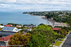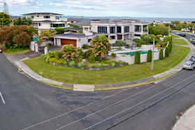 The 878 sqm corner site has 2 gated street entrances, fantastic Rangitoto and sea views and a concrete in-ground swimming pool.