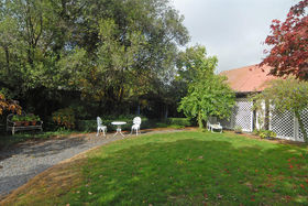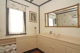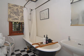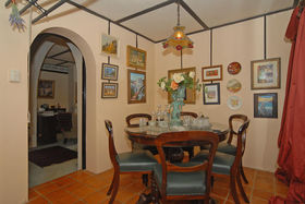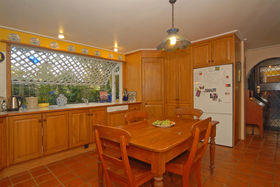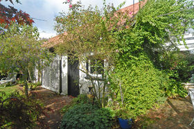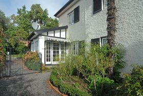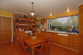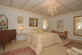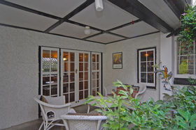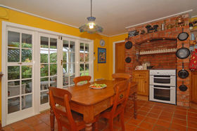 There is a large and elegant living room with gas fire, opening to the very spacious tiled kitchen and formal dining alcove. French doors open from the kitchen to an outdoor patio and entertainment area, along with the outer guest room complete with its own kitchenette, and other areas where you can relax in quiet and relish the charm and beauty of the garden.