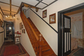 Currently used as an up market and well known Boutique Bed and Breakfast, you step into the entry foyer and into another world. The glow of chandeliers throughout, lead light windows, original battened ceilings and the rich gloss of polished wooden floors set the tone.