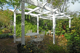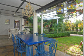 The solid stucco home with shutters framing the paned windows, stands proudly amongst mature trees framing the 1135 sqm garden, lush with lavender, roses, camellias, bougainvillea, buxus hedging and more. This is truly a garden for all seasons.