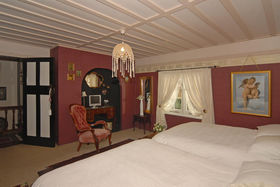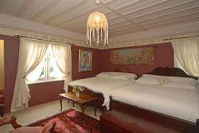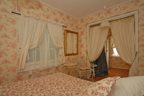 There are six bedrooms and three bathrooms, the magnificent Blue bedroom, the rose Toile on Toile room, the eggshell blue room reminiscent of the soft colours of a Renoir; the deep plum room matching the original tiles on the fireplace hearth, the French room and so much more.