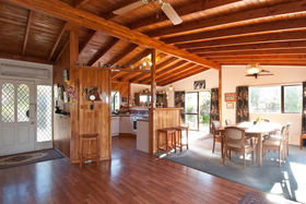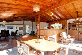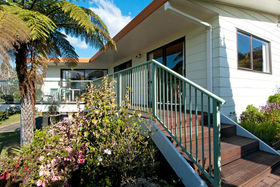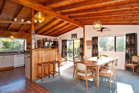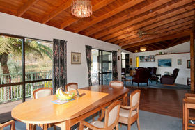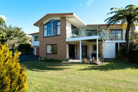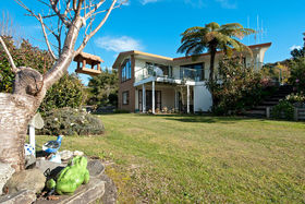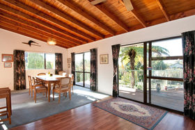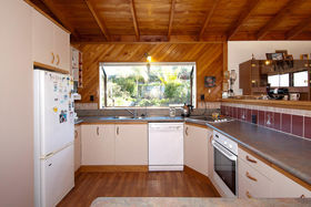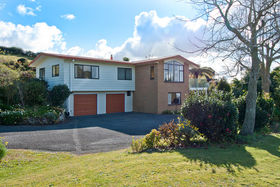 Attractive family home on 4,400 sq.m tidy, flat to sloping landscaped section. Generous living space with cathedral sarked ceiling in lounge; harbour views from large wooden deck, ensuite, 4 double bedrooms and ample double garaging. Close to shops and on the school bus route. Keen Vendor with price under latest CV! SEE IT NOW!