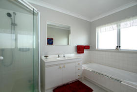 The 3 bedrooms are all good doubles plus an office, there is one bathroom up and one down. The double garage is attached with internal entry.