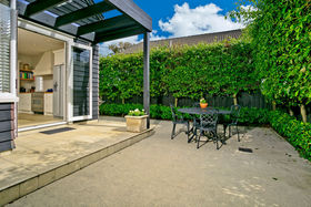 A modern Alan Shanahan designed home superbly built comprising cavity brick base, aluminium joinery and cedar weatherboard cladding. From the moment you enter and the gate closes your privacy is complete as the landscaped gardens and 'Hinuera Stone' paving set the tone for what this property has to offer. A quality home on 440sqm level section with 2 car garaging and additional parking this residence has all of its main living areas located on the ground floor. Elegant entry foyer and spacious hallway lead to a European inspired kitchen with stunning oak bench tops, dining for 8 and family lounge with built in gas fire; all opening outdoors onto stone paved private sunterrace and planted, fenced sunny garden and lawns. Elsewhere an open plan mezzanine gallery or office station, 3 double bedrooms all with ensuites, underfloor heating and quality fittings. Brilliantly located close to Milford Centre and a short walk from Milford Beach via the new Wairau Creek Tilt Bridge.