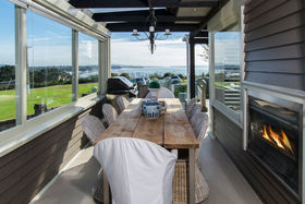 A showcase for entertaining with generous north facing living rooms and terraces, a separate formal lounge and private deck, an impressive designer kitchen, generous dining room and family area complimented by a gas fireplace and extensive views across the reserve to the beach and beyond.