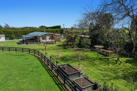 Set on 2.1505 hectares (approx.), this beautifully presented lifestyle block offers the perfect balance of modern living and country charm. The immaculate, fully renovated three bedroom, one bathroom home has been transformed into a contemporary residence, featuring a wood burner fireplace, double glazing, a stylish modern decor, and seamless flow to large, covered decks at the front and rear of the house, perfect for year round alfresco living. Practical features include a covered carport at the back door, ample garaging, and a half barn, ideal for all the tools and toys, and there's additional accommodation out here - a self contained granny flat consisting of one bedroom, living room, kitchenette and bathroom which is great for the extended family or a potential income source. But wait - there's more! In addition to the granny flat, there is also an extra one bedroom pod with its own deck and driveway entrance, perfect for a work from home option or additional income. The kids will love the swimming pool and spa pool, and for those with animals, the property is well set up with nine fenced and fertile paddocks plus a loading ramp and horse arena with a Tack Shed that can stay if required. Our vendors also lease the 2.02 hectares (approx.) of adjoining land so there is the potential for the purchasers to continue this arrangement. This property is ready for you to embrace lifestyle living or hobby farming. The gardens are lovely, easy care and feature a pond, raised vegetable gardens, and a small orchard of fruit trees. This feature packed property is just minutes from town, giving you the space and freedom of country living without sacrificing convenience.